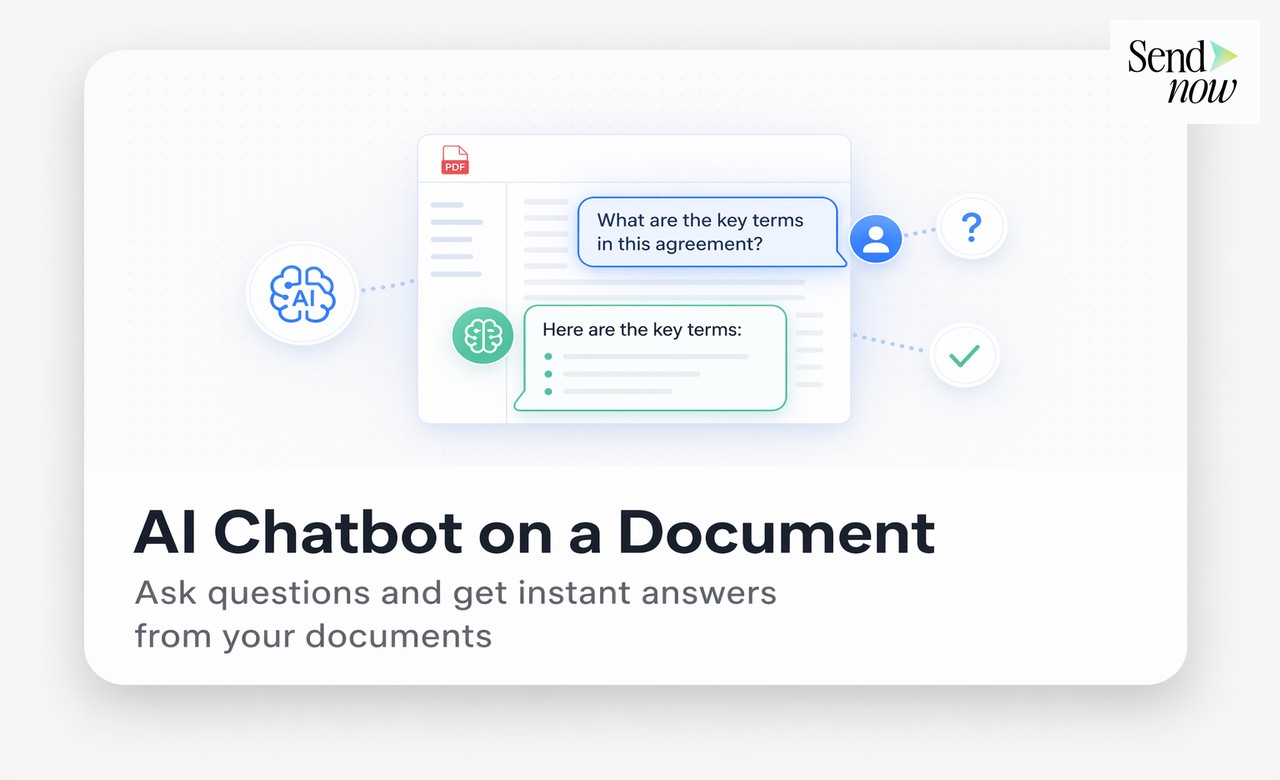 When you enable the AI chatbot feature for a document in SendNow, the platform processes the document's text using a large language model. This creates an AI system that has read and understood the entire document and can answer questions about its specific content.