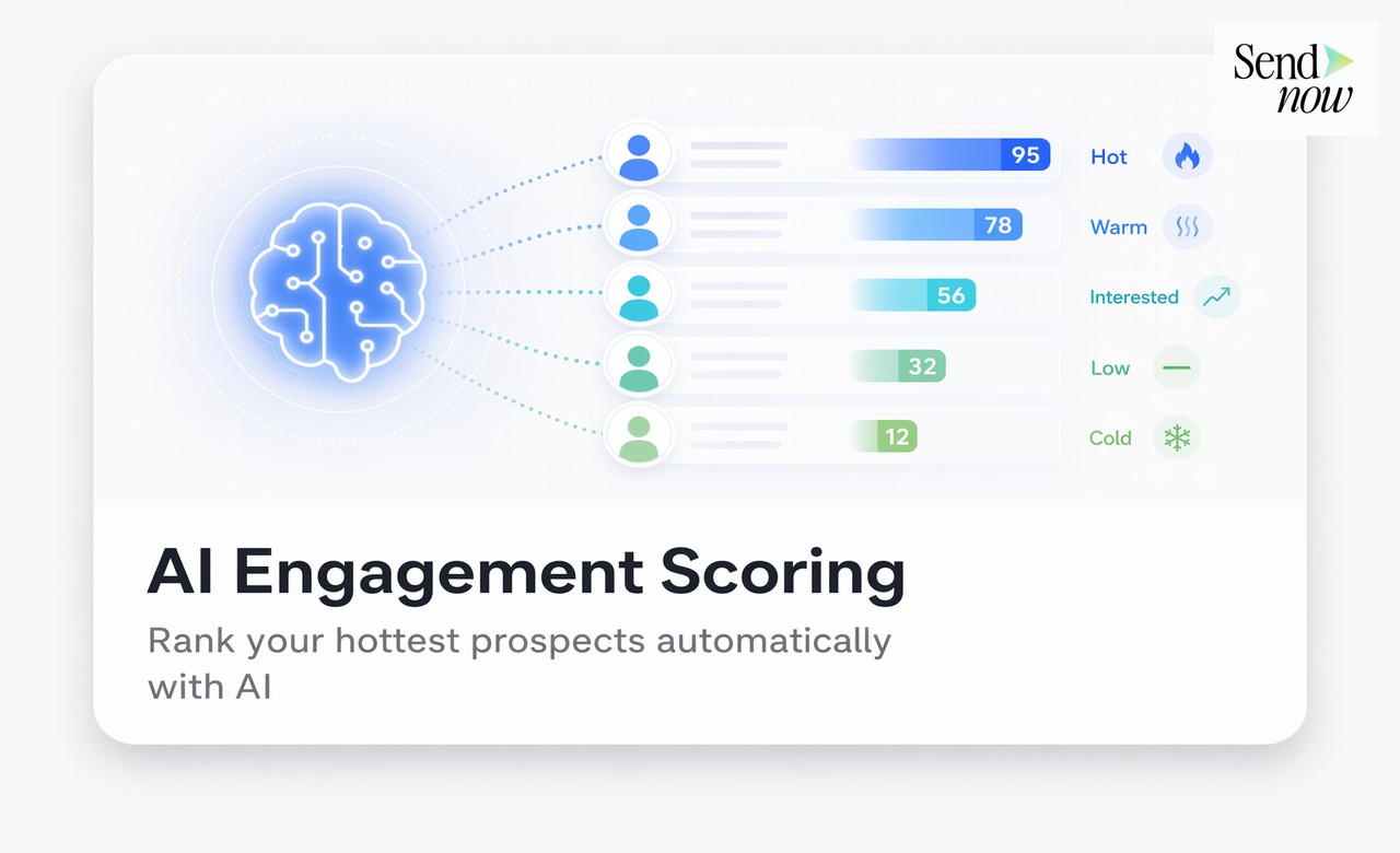 Does SendNow provide AI engagement scoring? Yes. SendNow calculates AI engagement scores for every document link, ranking recipients by their interaction behaviour and surfacing the hottest prospects in your dashboard in real time.