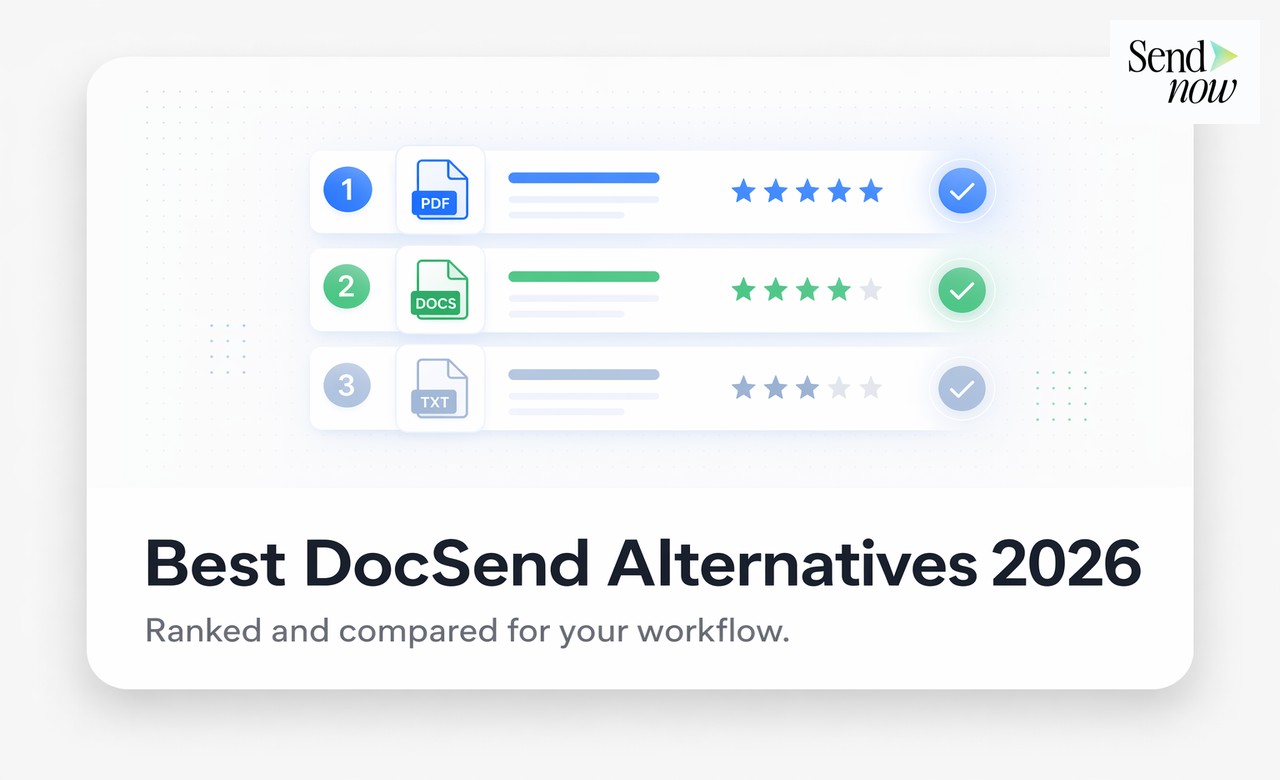 Q: Is there a free DocSend alternative? Yes. SendNow offers a free plan that includes document tracking, per-page analytics, and visitor notifications — without requiring a credit card.