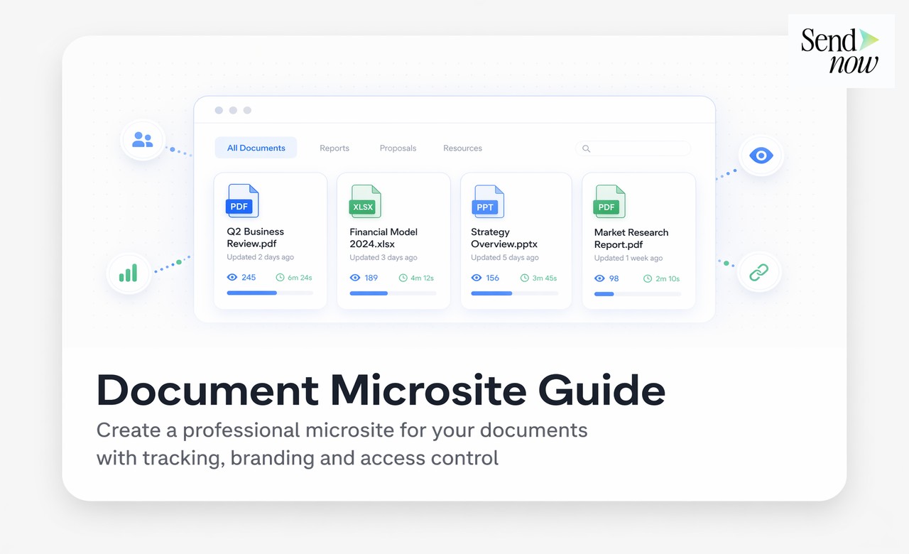 One significant advantage of a document microsite over individual links is consolidated analytics. Rather than checking engagement data separately for each document, your SendNow analytics dashboard shows you how each recipient engaged with the microsite as a whole, including which documents they opened, how long they spent on each, and which sections received the most attention.