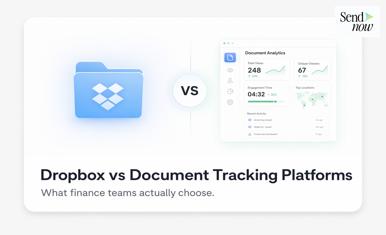 Dropbox is a file storage and synchronisation platform. Document tracking platforms are built to tell you who opened your document, which pages they read, and what they did next. These are different tools serving different needs, and finance teams consistently reach the same conclusion: Dropbox handles internal storage well, but for external document sharing with clients, counterparties, and investors, dedicated tracking is the better fit.