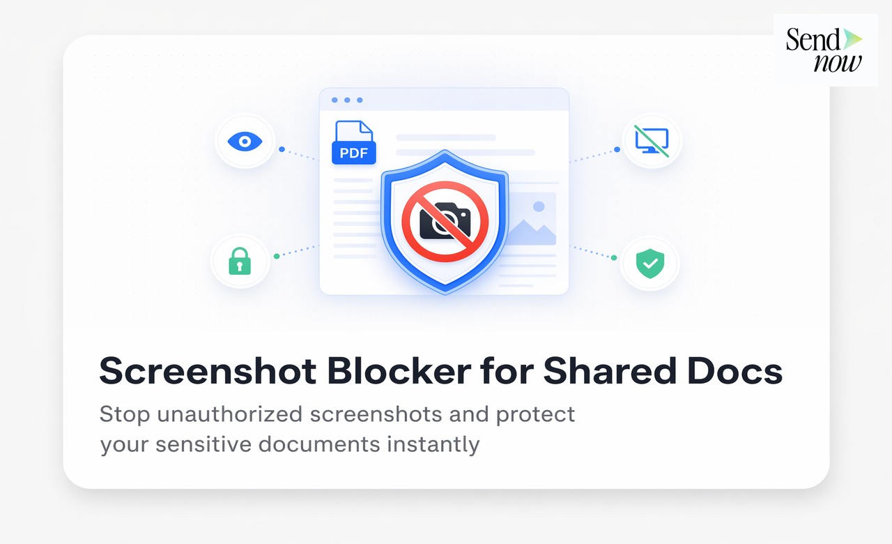 Q: What file types does Screenshot Blocker support? Screenshot Blocker works on all file types rendered in the SendNow viewer — PDF, DOCX, XLSX, CSV, images, and video. It activates whenever a viewer opens a document through a SendNow link.