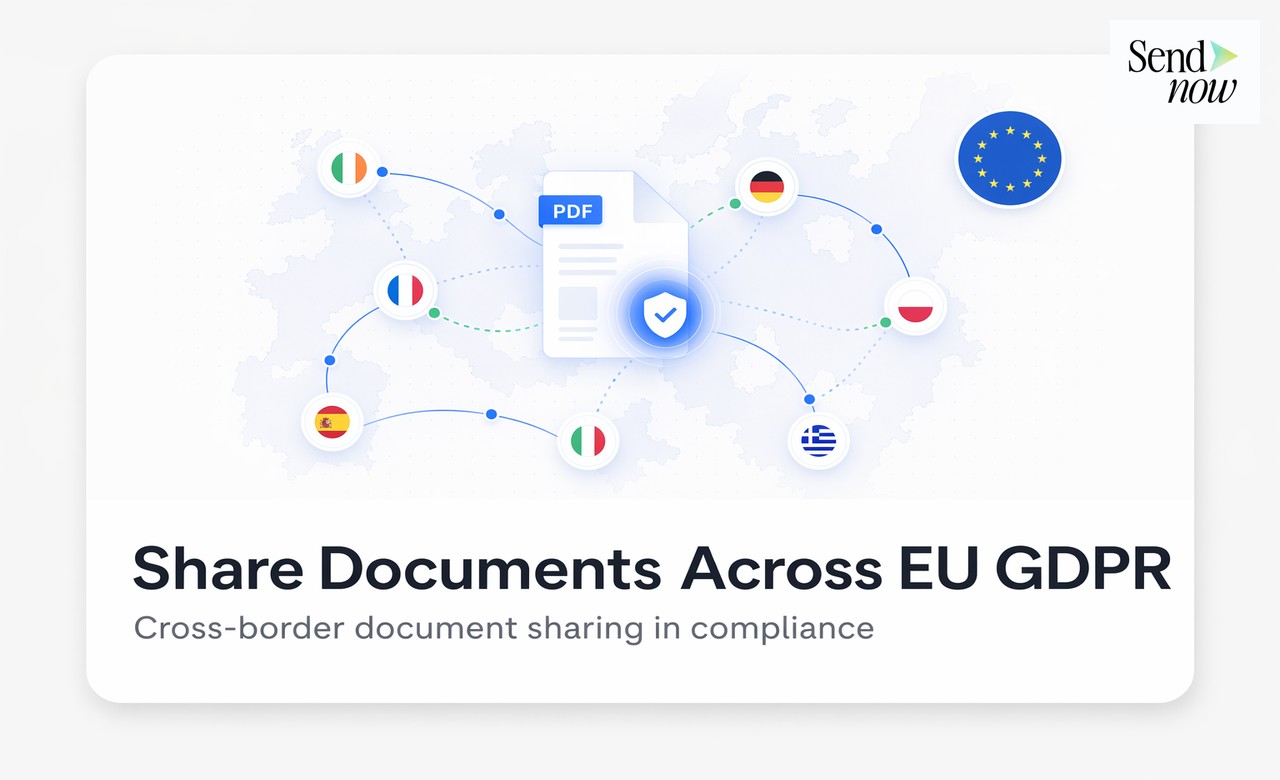 Share documents with any EU client, confidently. SendNow processes and stores all data within EU infrastructure, provides geographic access tracking, and gives you full audit records for every document link. Start at sendnow.live.