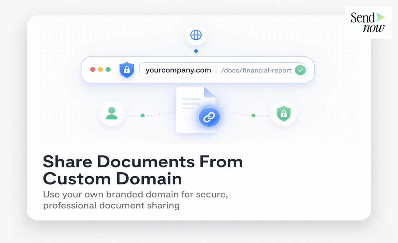 Custom domain document sharing means that every link you send to clients, investors, or prospects uses your firm's own domain, such as docs.acmecapital.com or files.yourfirm.co.uk, rather than a generic URL from a third-party platform. It takes less than ten minutes to configure in SendNow and makes a measurable difference to how your firm is perceived by the people receiving your materials.