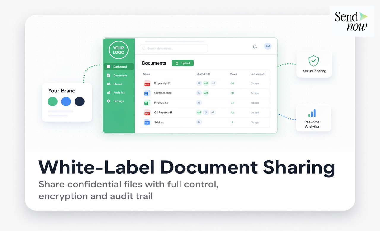 All SendNow features, including per-page analytics, access control, expiry dates, and download restrictions, function identically in a white-label setup. White-labelling affects only the presentation layer.