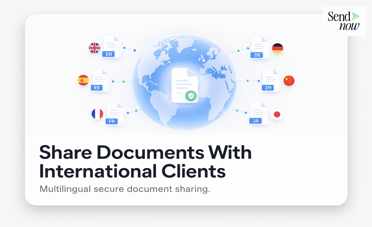 Dokumente mit internationalen Kunden zu teilen, funktioniert am besten, wenn das gesamte Erlebnis ihren Erwartungen entspricht, einschließlich ihrer Sprache. SendNow ermöglicht es Ihnen, sichere Dokumentenlinks mit lokalisierter Markenführung und sprachbewussten Anzeigeeinstellungen zu erstellen, sodass Ihre Kunden ein professionelles Portal anstelle eines generischen Anhangs öffnen. Dieser Leitfaden erklärt, wie Sie die mehrsprachige Dokumentenfreigabe für EU- und globale Finanzkunden mit SendNow einrichten.