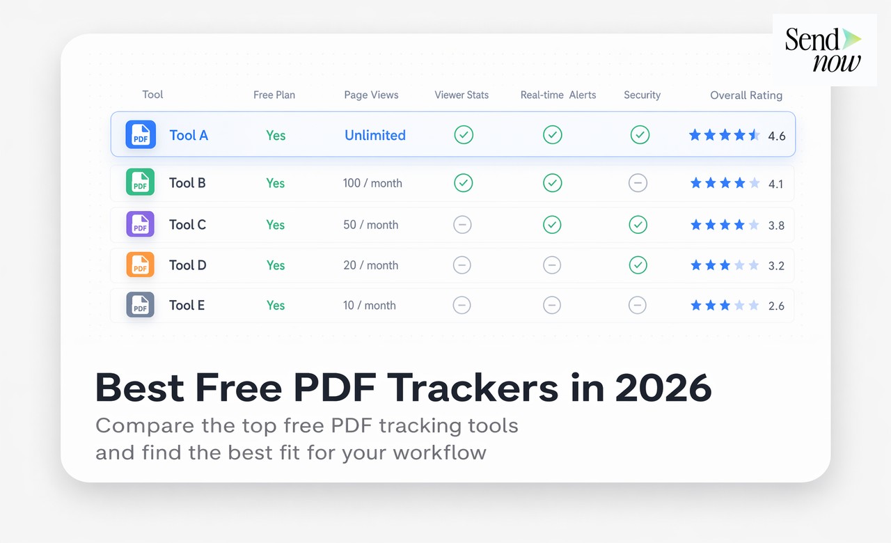 I migliori tracker PDF gratuiti nel 2026 offrono avvisi di apertura in tempo reale, analisi a livello di pagina e identificazione dei lettori senza alcun costo, con livelli a pagamento disponibili per i team che necessitano di un volume maggiore o controlli avanzati. Per i professionisti della finanza che condividono proposte e rapporti, il tracker gratuito giusto fornisce abbastanza informazioni per migliorare significativamente il timing del follow-up senza alcuna spesa iniziale.