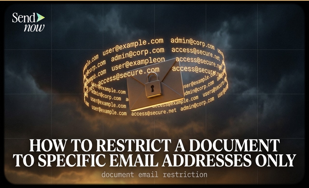 Puoi limitare un documento condiviso a indirizzi email specifici aggiungendo un elenco di autorizzazione nelle impostazioni di Creazione Link in SendNow. Solo i visualizzatori il cui indirizzo email è sulla tua lista approvata possono aprire il link — tutti gli altri vengono bloccati prima di vedere qualsiasi contenuto, indipendentemente da come hanno ottenuto il link.