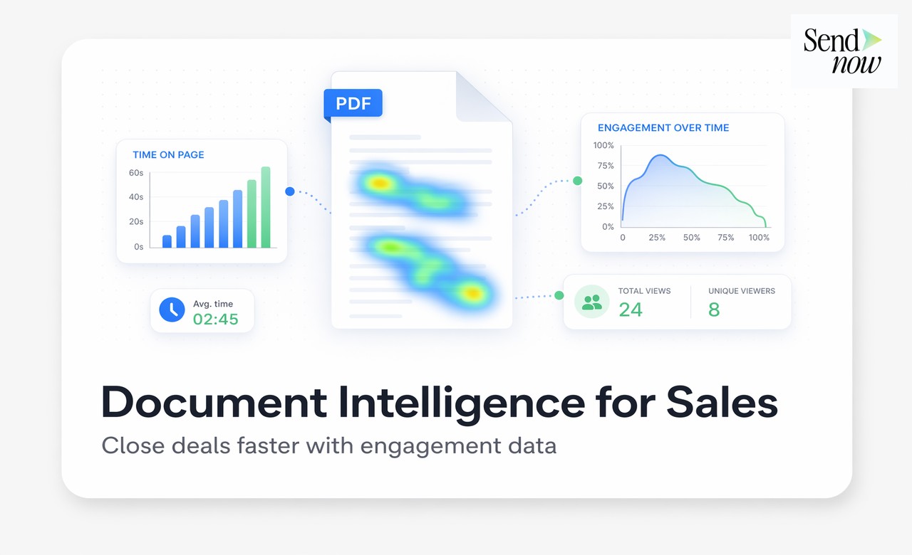 Zacznij korzystać z inteligencji dokumentów już dziś. SendNow zapewnia analitykę na poziomie strony, powiadomienia o powrotach w czasie rzeczywistym, ocenę zaangażowania i dane gotowe do CRM dla każdej propozycji, którą wysyłasz. Wypróbuj to na sendnow.live.